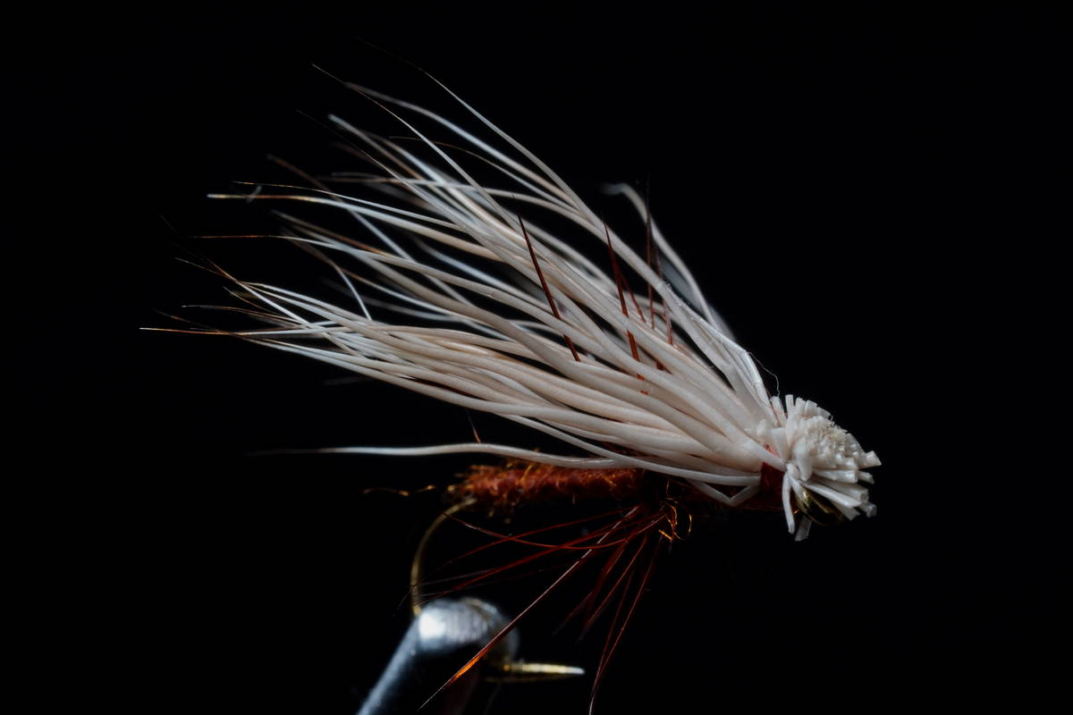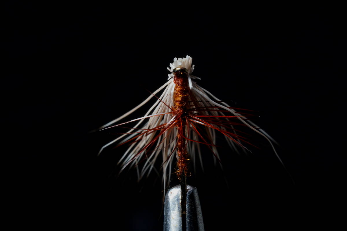 ■ 水面に貼りついたカディスをイメージ