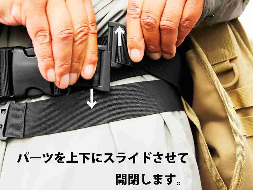 ■ ストリームウォッチャーショルダーバッグ B-28の背面のループをウエストベルトに通すことで、バックを簡単に固定。